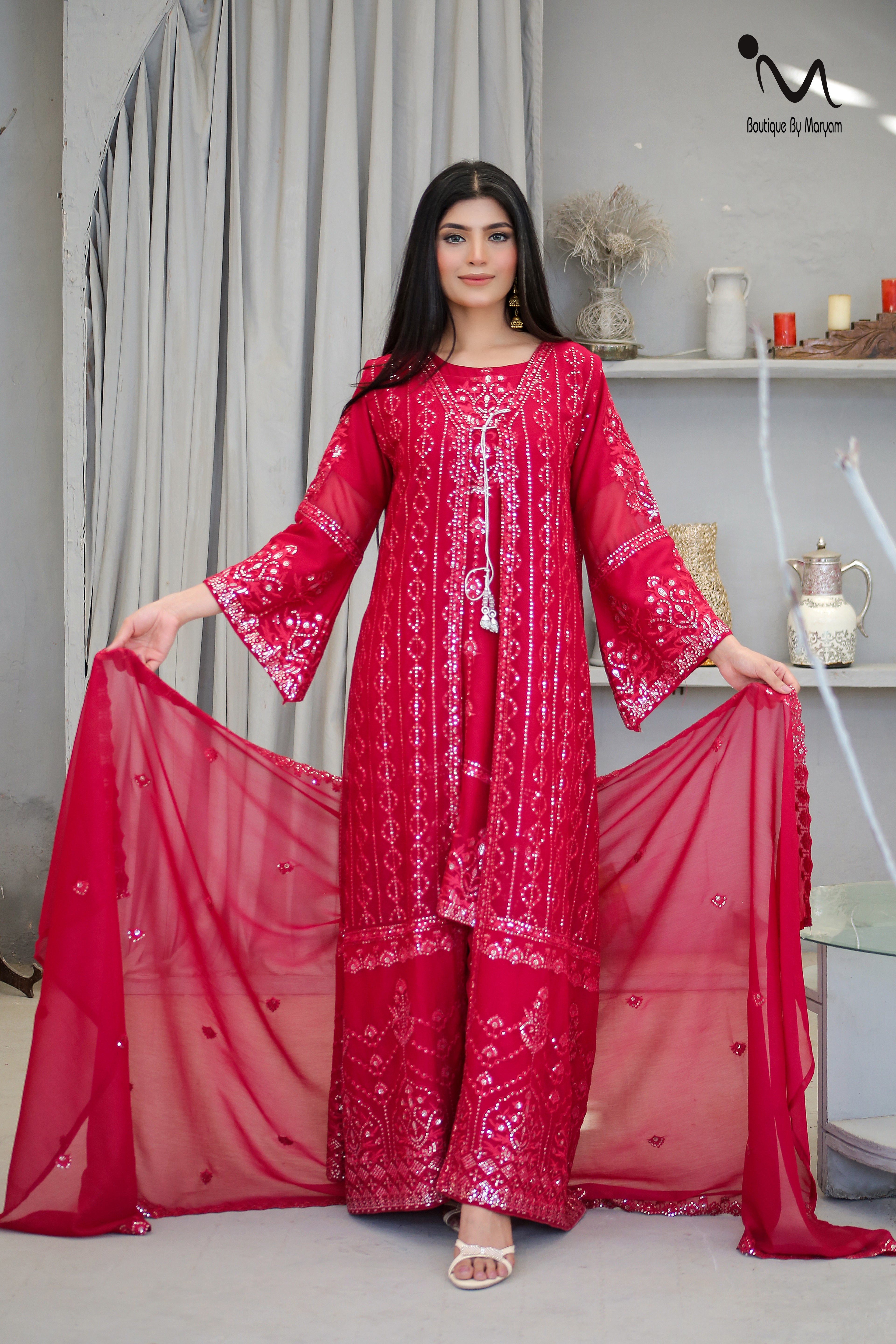 BF-023 4PC Sequence Sitara Maxi | Luxury Floor Length Bridal & Wedding Gown