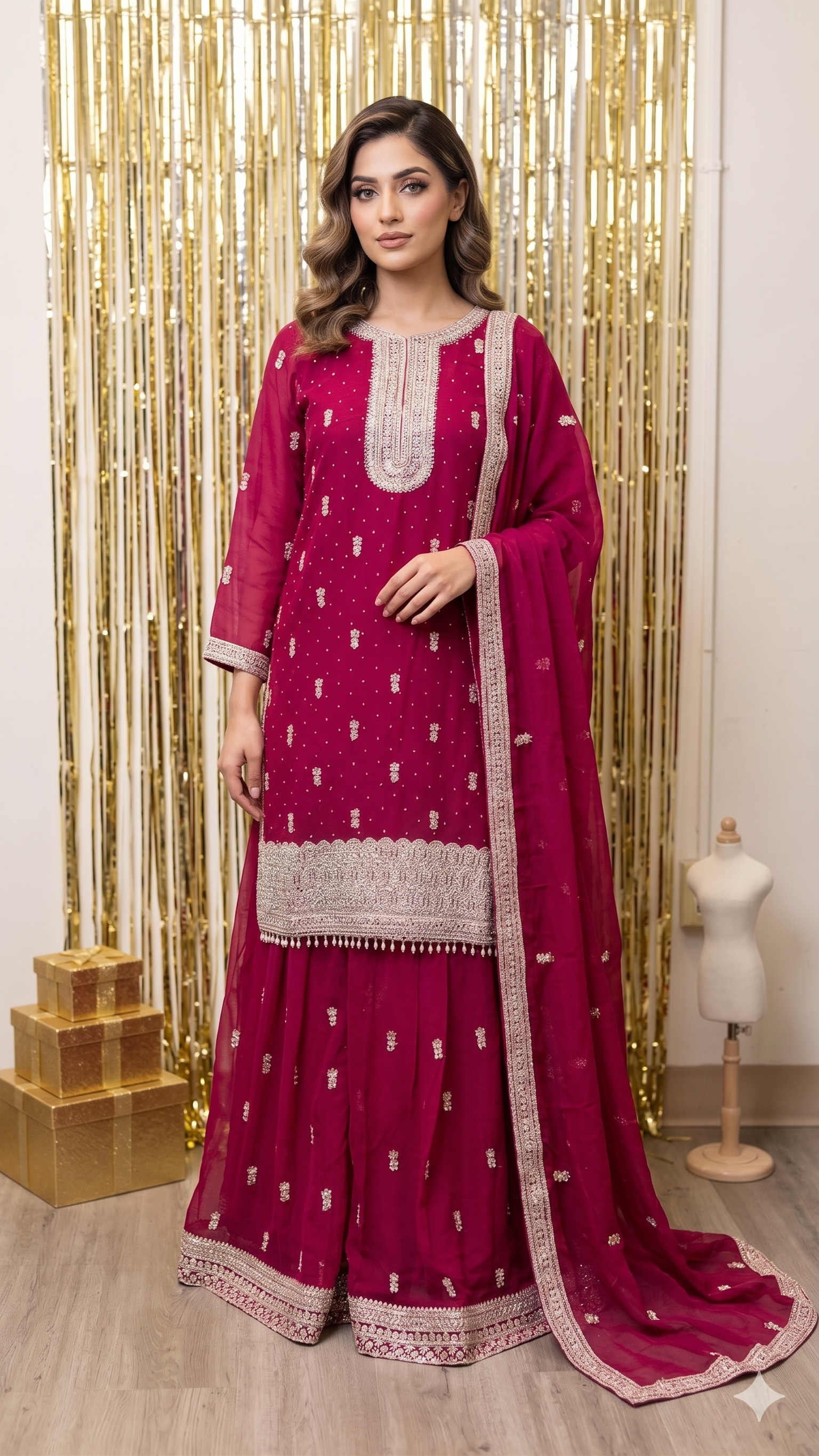 3PC DMC Stone Work Gharara Suit | Heavy Designer Wedding Wear