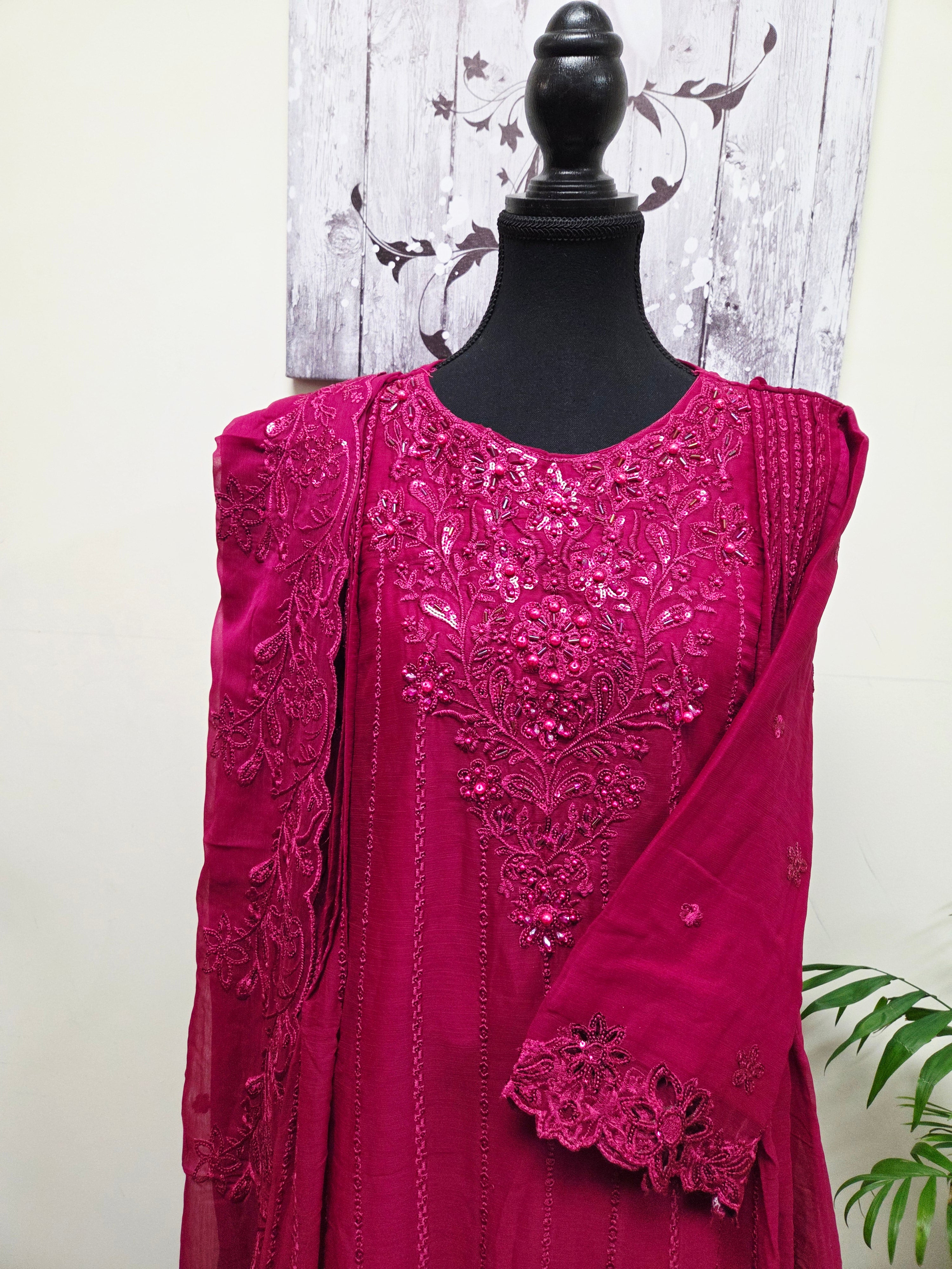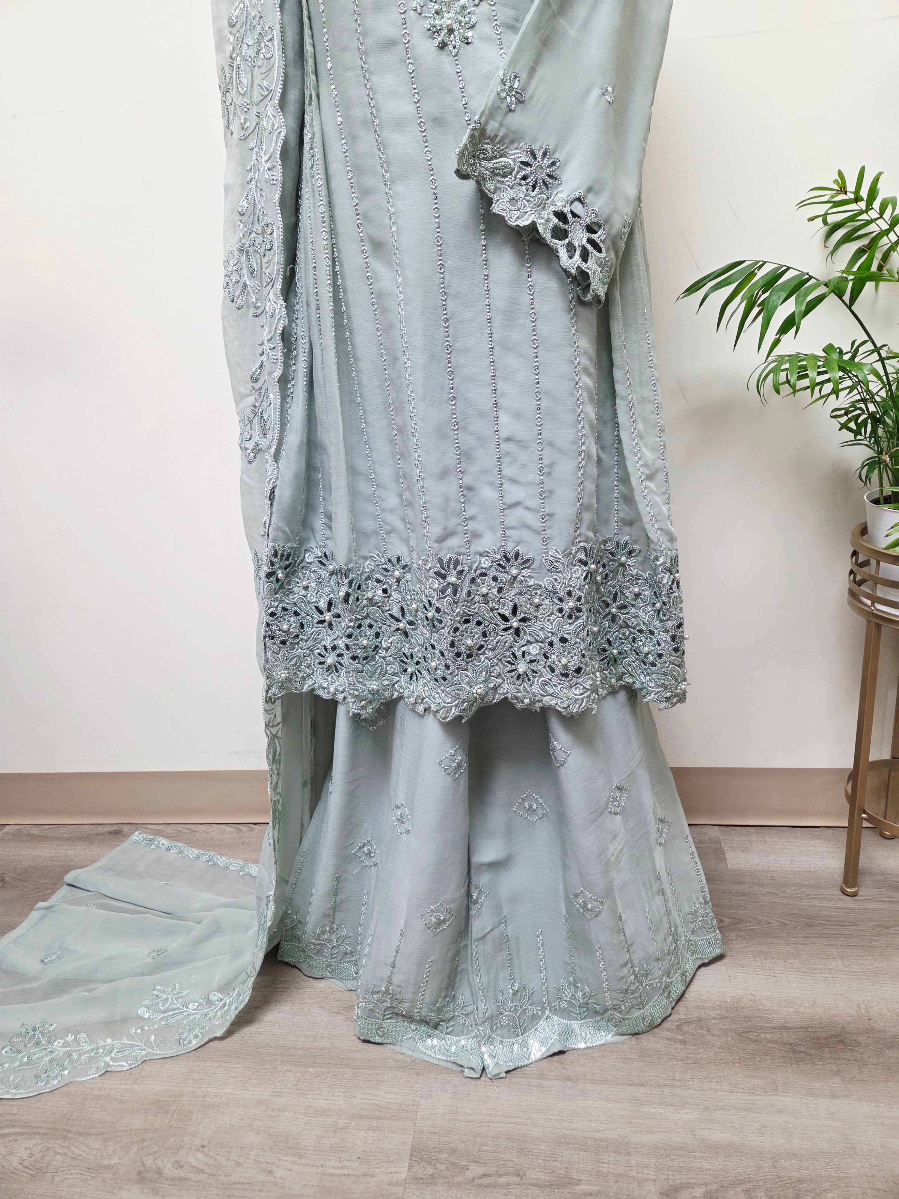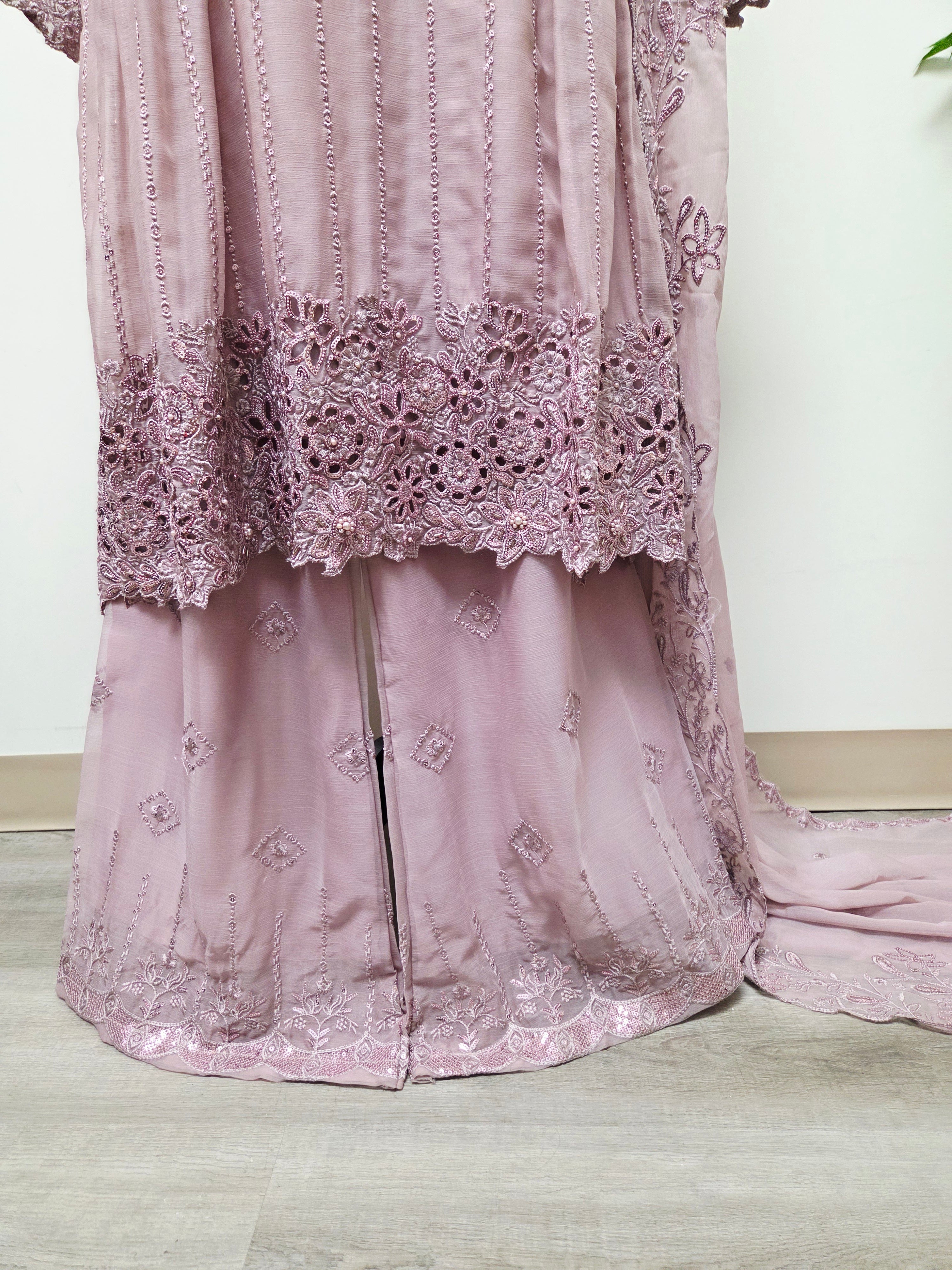 Elegant Chiffon Pleated Short Frock & Intricate Cutwork Palazzo Set