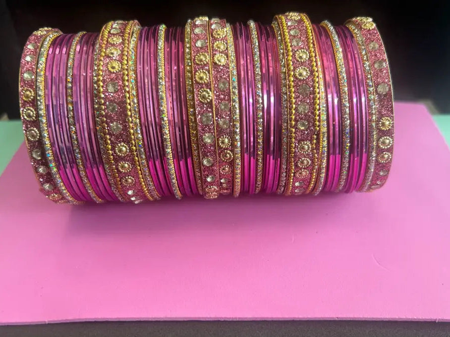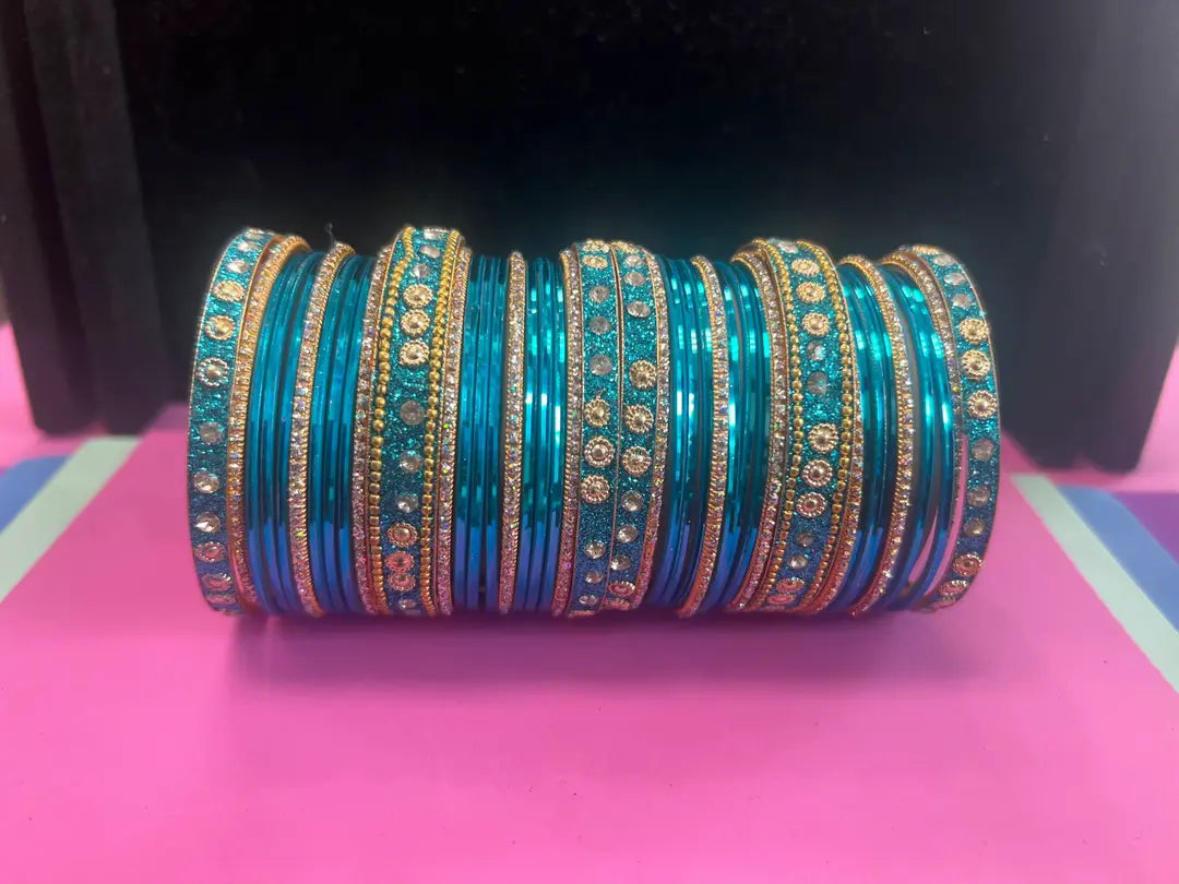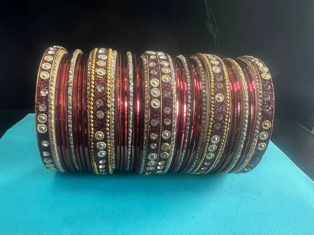 Luxury Stone-Studded Metal Bangles – Sparkling Handcrafted Festive Kada Set